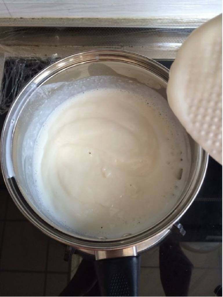 5. 然后加热,注意要小火噢,微开即可,看看边上已经有泡泡出现了