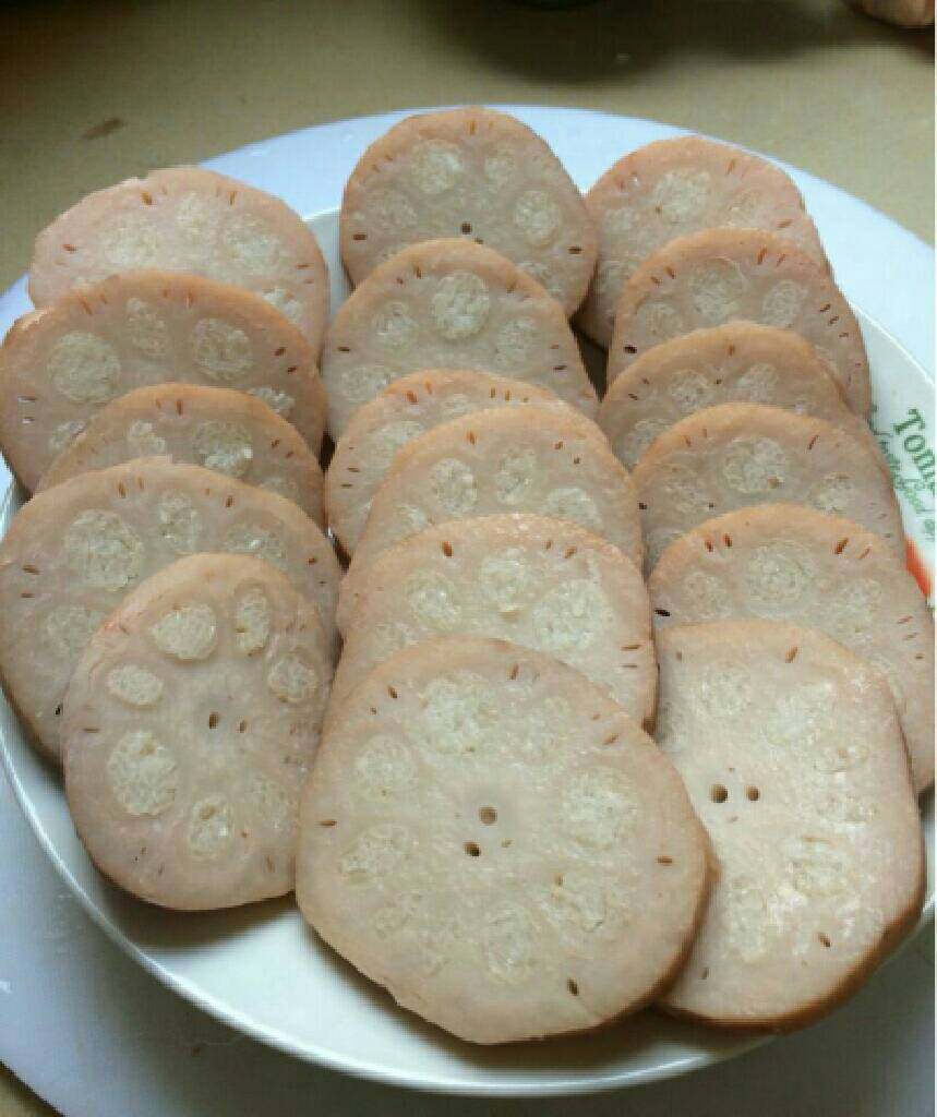 2. 把莲藕各一端切掉,注意切平,还要当盖子用