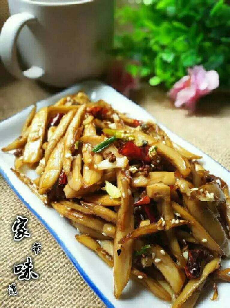 1. 杏鲍菇洗净,用手撕成适当大小丝。