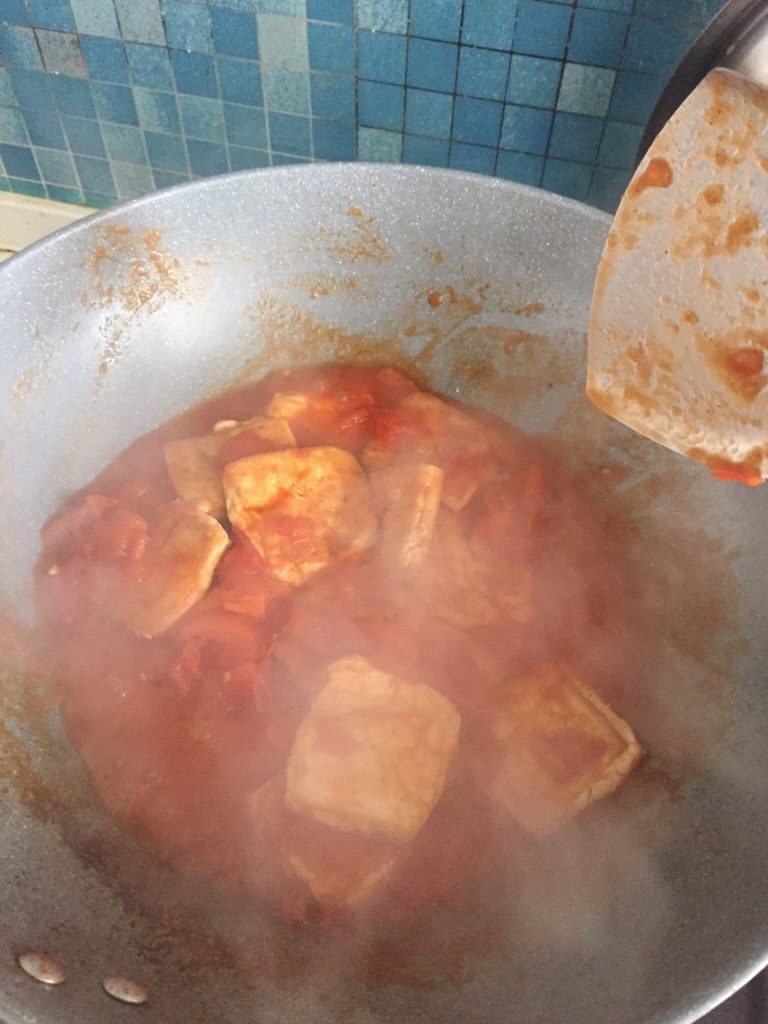 2. 在煎豆腐块时,把蕃茄去皮,切成小丁状!
