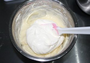 5. 奶油奶酪隔热水软化,搅拌无颗粒状态。