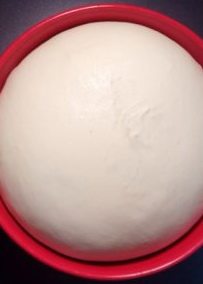 1. 后油法将面团揉至扩展阶段,盖保鲜膜发酵2倍大