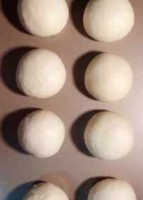 3. 完成发酵的面团取出,排气后分割成8等份,滚圆松驰15分钟