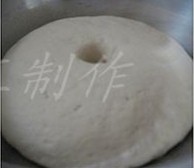 3. 将干酵母放入盆中,用一部分水将其融开(另一部分),再将面团原料全部放入,搅拌均匀后,用留出来的水将面揉成团,放温暖处发酵;