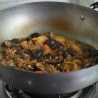 5. 倒入清水,并放入香菇和胡萝卜,大火烧开,小火煲煮15-20分钟。