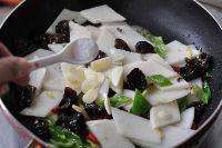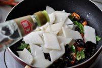 1. 山药去皮、青红椒洗净、黑木耳泡发备用。