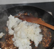 8. 倒入香菇丁和虾皮,翻炒一分钟