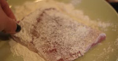 5. 正反面蘸高筋面,并拍打掉多余的粉