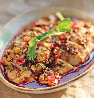 大名鼎鼎的“口水鸡”是一道四川风味的凉菜。麻辣红油浸没的鲜嫩鸡块,搭配丰富的佐料,集麻、辣、鲜、香、嫩、爽于一身,想想都让人直咽口水,难怪会叫“口水鸡”呢。