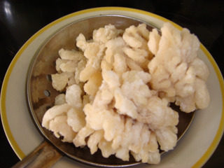 昨天我第四次学做“菊花鱼”终于成功了!前几次都掌握不了要领,花儿不开,因为妈妈和儿子都喜欢吃,所以,再次拜访了网友“Hiyoungmoon和诗心”的家园,每一个步骤很认真的看,细心琢磨,终于,成功的做出来了。。。呵呵,还做了双色的呢。