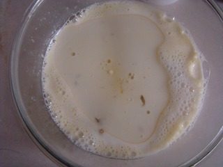 1. 全蛋与细砂糖搅拌均匀。