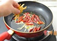 7. 大火用油爆至虾壳酥脆时,马上放入香芹梗,撒入一些香菜碎