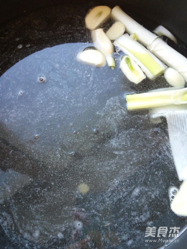 3. 锅中加水,葱姜蒜,料酒,生抽,糖,烧热后加入排骨