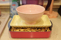 11. 趁热放入模具,使劲压平,上面压重物2小时。