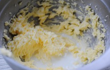 2. 软化后的黄油加细砂糖,用电动打蛋器打至顺滑。