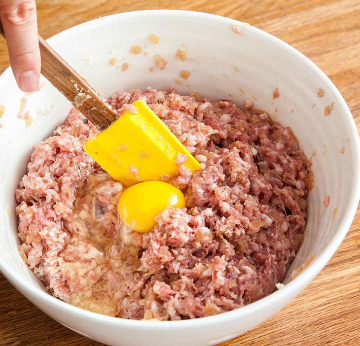 5. 双手沾上水,反复摔打成圆形,放入模具中,每个丸子100克