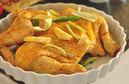 - 给鸡入味的时候,盐不要放太多了,因为事后还有蘸料,如果蒸之前就抹太多盐,过咸就没办法挽救了;姜黄根据个人口味放吧,喜欢味浓一些就稍微多抹点儿,喜欢淡淡姜黄味的就少抹点儿);