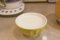 4. 植物油和牛奶倒入盆里,搅拌均匀。