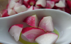 这是在我的家乡湖南每个人家中都必备的一道佐餐小吃,也可以说是凉拌菜。用整颗的白萝卜或红萝卜放入老酸坛子里,一般过几天就可以拿出来。切片后醮点辣椒油,白糖,麻油,伴点香菜当成小吃,也可以用来炒菜配菜,脆脆的酸甜口感顿时让人食欲大开。