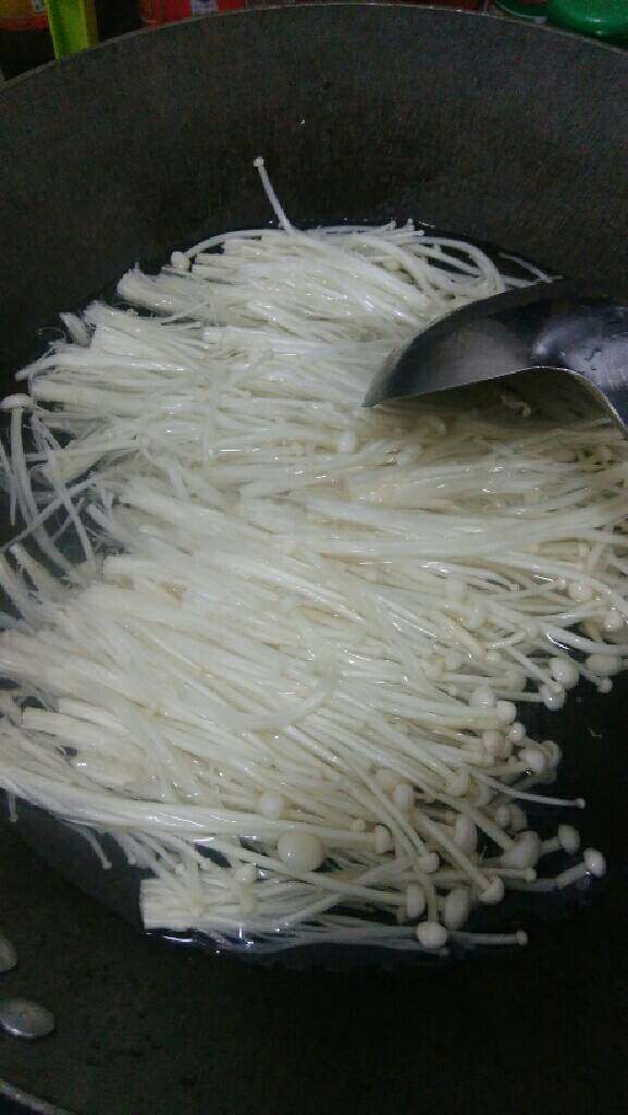 6. 放金针菇,加入鱼香汁,炒匀收汁即可