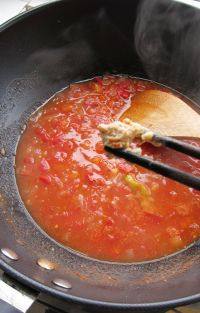 6. 加入少量番茄酱翻炒均匀,如果买到的番茄酸甜度够,也可不加