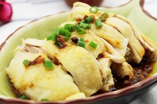 6. 将已经凉透的鸡捞出沥干水,斩件摆盘,待蘸料冷却后淋在斩件上,再撒上些葱花或香菜,OK,搞定~