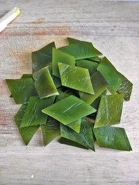 2. 海带用水浸泡1-2个小时后沥水,切成菱形块。