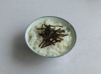 5. 放上梅干,根据自己口味撒少许盐,也可调入芝麻、日式酱油、芥末等调味料,拌匀就可吃了