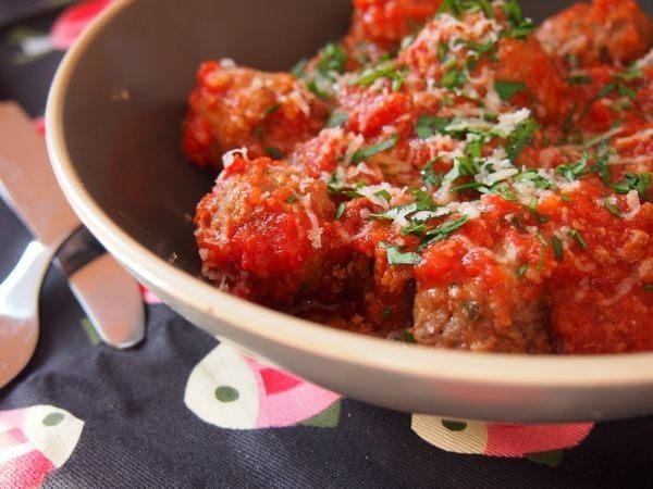 5. 肉丸各面金黄后,倾斜锅子,用勺子尽量舀出多余油分,锅子放回火上保持中火,加入番茄,一撮盐,翻拌1-2次肉丸使其全部沾裹上酱汁。加盖调整火力,以酱汁保持炖煮而不滚沸为宜,炖煮20-25分钟,直到油分和番茄分离浮在酱汁表面,试味,修正咸度,上桌。
