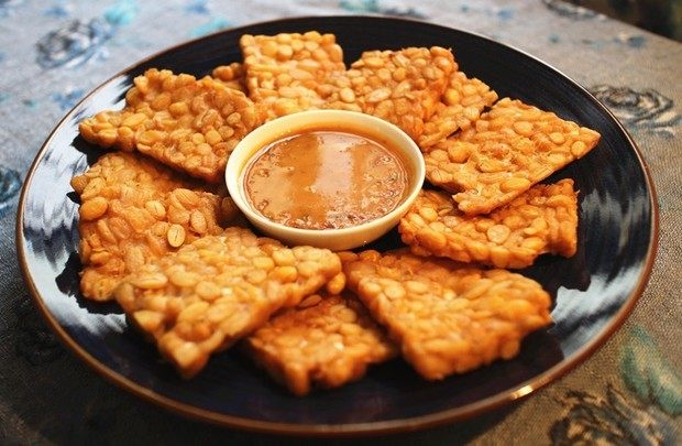 8. 炸好的天贝就可以蘸酱食用了。