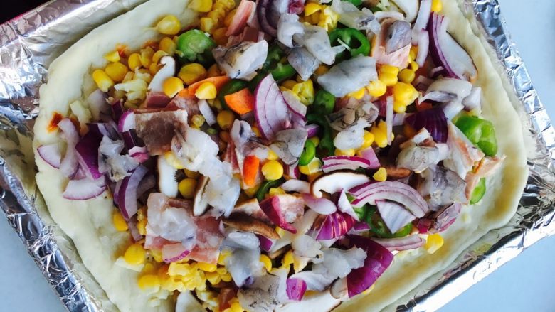 这个披萨料很足,加入中式的蒜蓉辣椒酱进行改良,味道好极了。用橄榄油和牛奶替代黄油和面,保留了披萨的味道,更加健康!