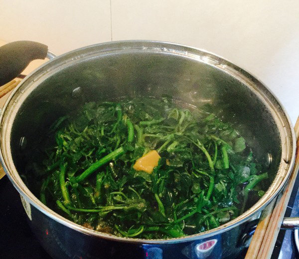 7. 盛起西洋菜,可以适量放点酱油,也可以不放