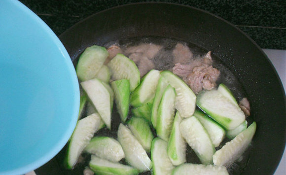 - 瘦肉切片后腌制15分钟左右,炒起来口感嫩滑入味。平菇焯一下水可以去除在栽培时留下的杂质。水瓜切滚刀块煮熟后好看不易碎烂。水瓜烹调过程中会渗透水分,水量人均大半碗就可以了