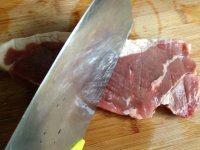 1. 牛排用刀背或肉锤轻拍数下,将肉质稍稍拍松些