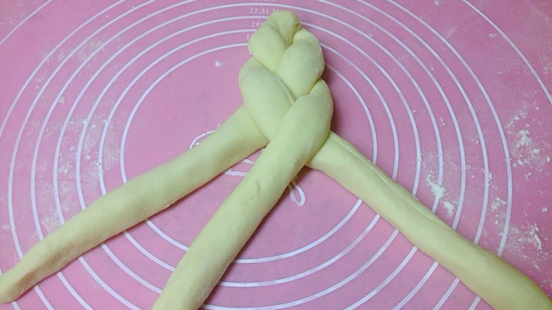 11. 把3根面卷编织成1根粗辫子。