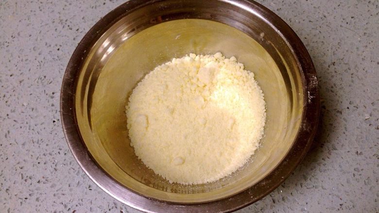 14. 发酵时制作奶酥,把奶酥材料混合成无干粉颗粒即可。