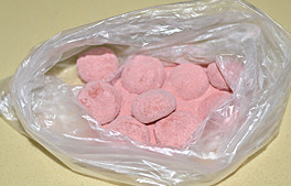 8. 保鲜袋中将糖霜和草莓粉混合均匀,烤好的饼干稍晾一会,尚有余温时放入袋中,翻动饼干使其均匀沾满草莓糖粉即可。
