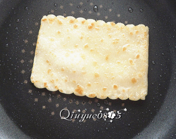 7. 面团擀薄后,用刀划去四边,呈如图整齐四边形状。