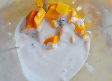 2. 另外的芒果丁倒入搅拌机中,加入酸奶;