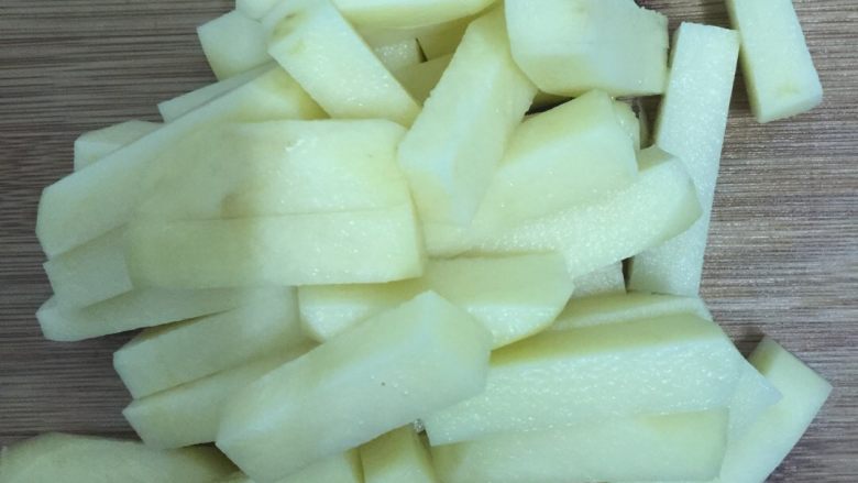 1. 先将土豆洗干净去皮,然后切成大概1cm左右的长方块。