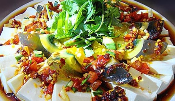 2. 2.其中碎豆腐可以摆至中心打底,中间摆上皮蛋。