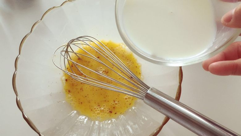 6. 将吐司面包双面裹上牛奶蛋液 (适当浸湿即可,不要裹太多,不然煎的时候面包容易黏糊)