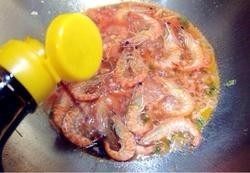 7. 7.锅中汤汁滚起,放入虾,调入一大勺老酒,一大勺生抽,少许盐。翻匀盖上锅盖焖至收汁即可。