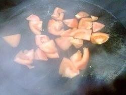 5. 5.锅中放入适量水,加入盐和几滴生抽烧开后放入西红柿