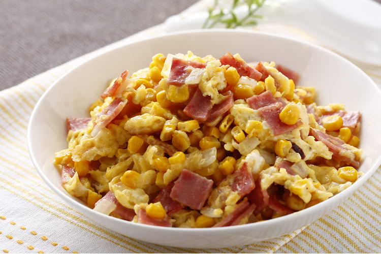 2. 雞蛋打入碗中打匀,加入玉米粒、鹽備用