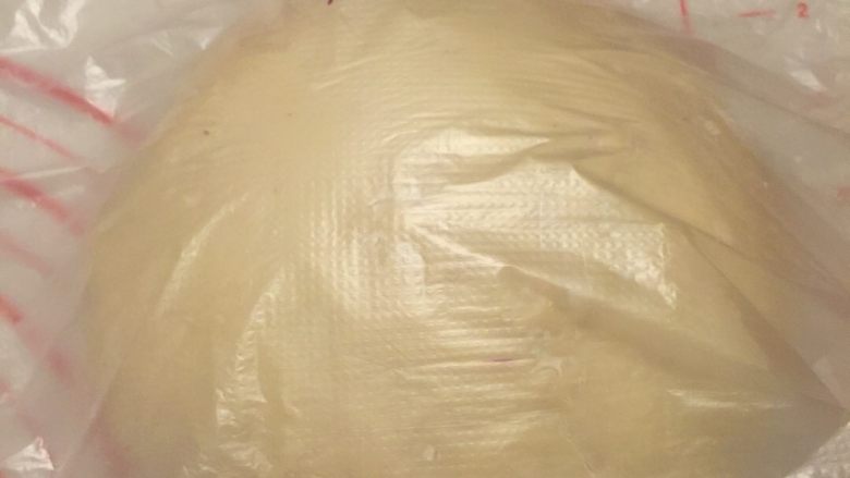 3. 把外馅的材料和成面团,盖上保鲜膜发酵一个半小时。