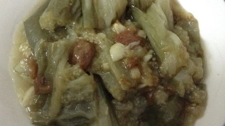 5. 再放入白茄子,一边炒一边用铲子切烂白茄子,这样可以使白茄子更加入酸味,也不要切得太烂,几下就好。最后放点鸡精调味即可。