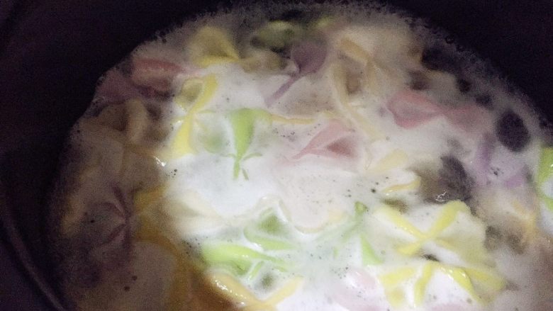 7. 中火煮开后转小火盖盖子焖煮7分钟左右就会比较软,面身有点透明没有白色硬芯或者用筷子夹面,面容易被夹断,就代表煮熟了。蝴蝶面因中间有褶皱部位比