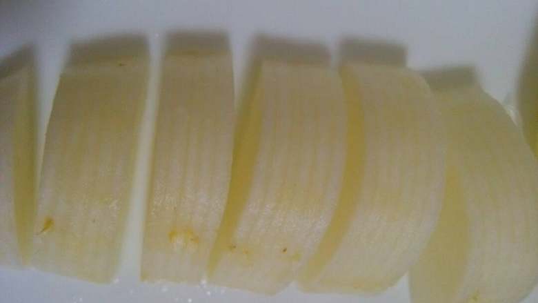 3. 再片成薄片,中间不要断,大概一公分处切断。