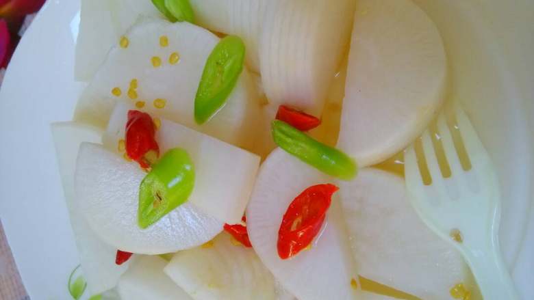 8. 一个钟后再拿出来吃,要是没腌好就再腌久一点。